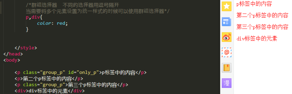 css选择器:css选择器可以为拥有指定属性的 HTML 元素设置样式,主要包含标签选择器器、类选择器、id选择器以及群组选择器等等.