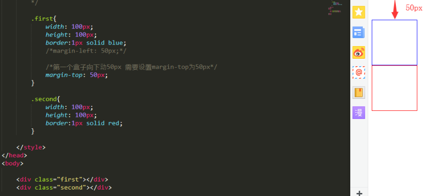 初识margin:margin也叫边距,是盒子与盒子之间的间距,有margin-top(上边距) margin-bottom(下边距) margin-left(左边距) margin-right(右边距)