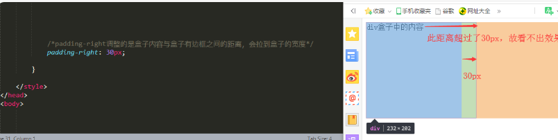 padding:30px 20px 20px 50px;顺序是上,右,下,左。