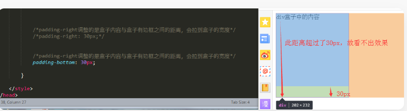 padding:padding叫做内间距,它可以调整盒子与内容之间的间距,它也有上下左右四个方向,所以有padding-top(上内间距) padding-bottom(下内间距) padding-left(左内间距) padding-right(右内间距)